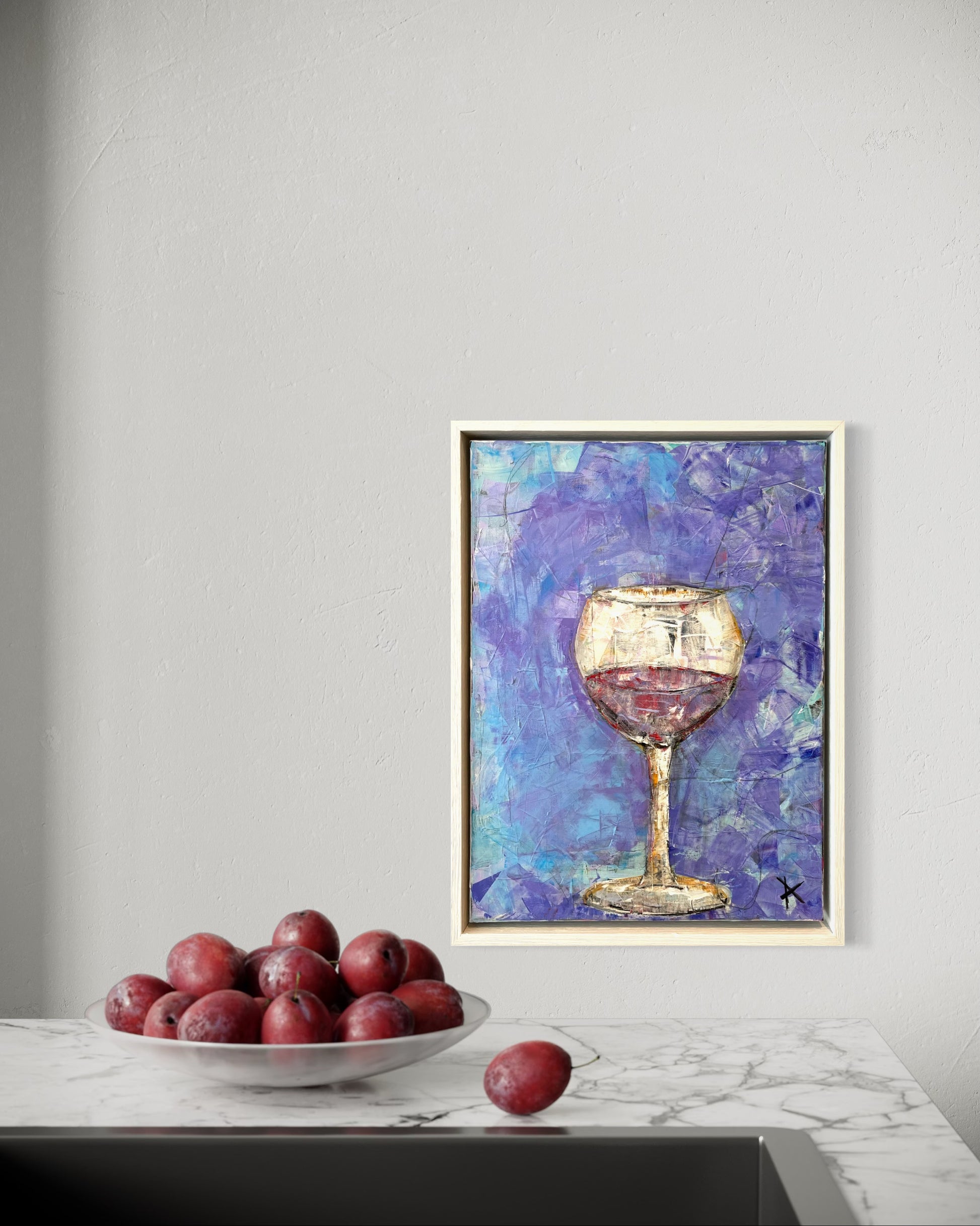 - Mounted in a white wooden floater frame, Ready to hang