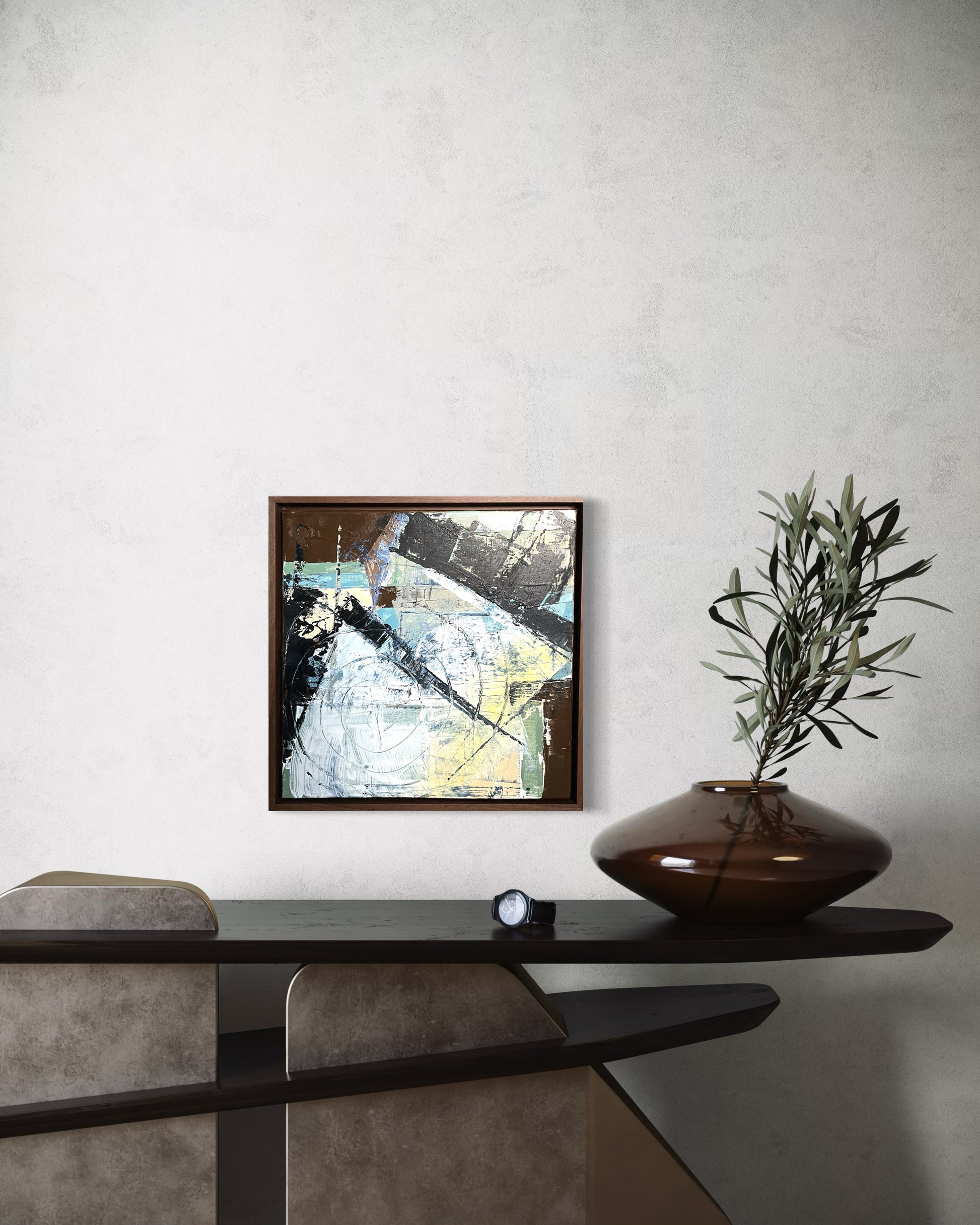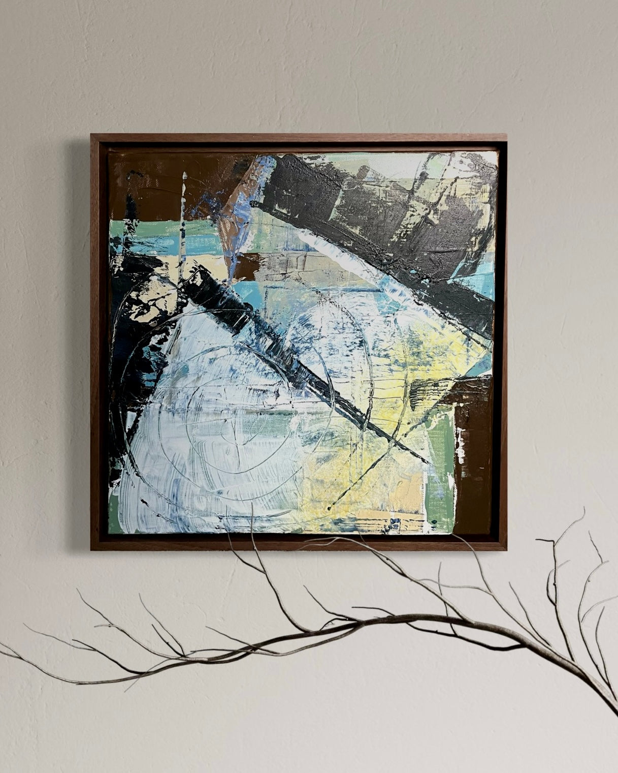 - Mounted in a walnut wooden floater frame, Ready to hang